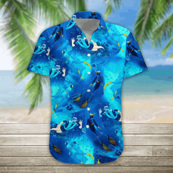 3D Freediving Hawaii Shirt, Hawaiian Shirts for Men Short Sleeve Aloha Beach Shirt