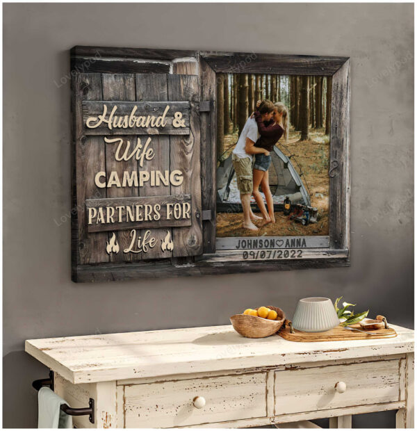 Custom Photo Husband and Wife Camping Wall Art for Couple, Camping Lovers Canvas, Gift for Her