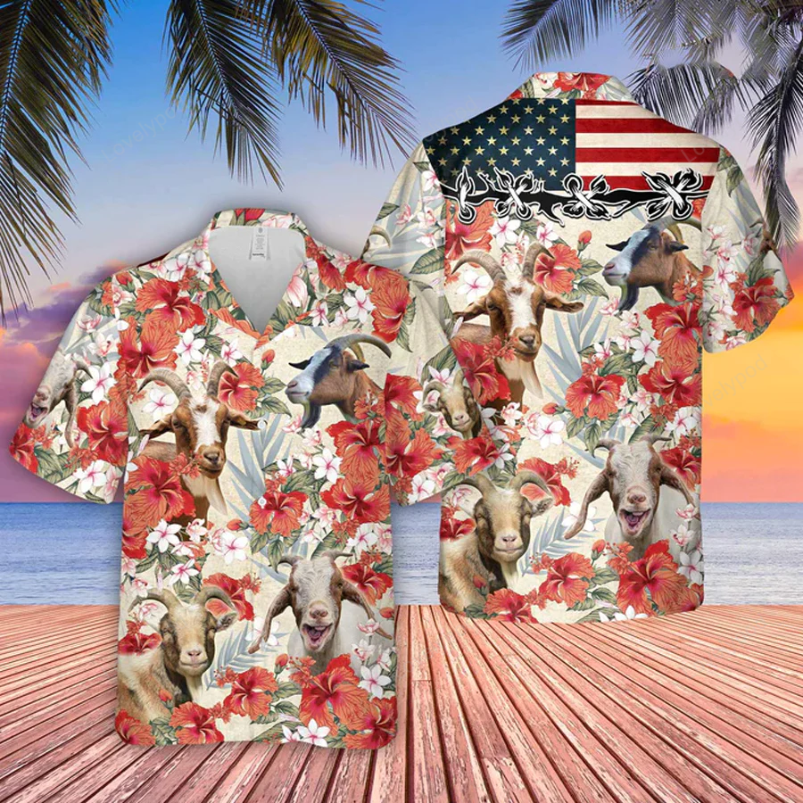 Be the first to review “Goat Hibicus Floral Us Flag 3D Hawaiian Shirt, Summer aloha shirt Men and women”