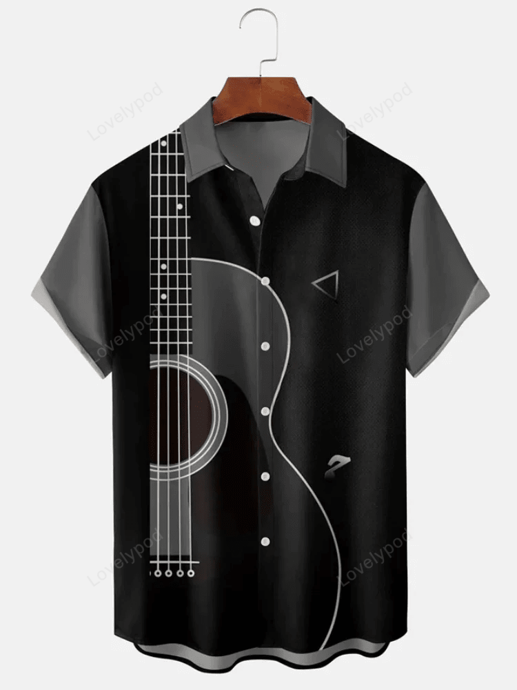 Men’s Music Guitar Print Loose Casual hawaiian Shirt